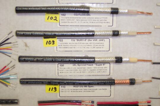 Wireman's CQ Coaxial Cable pre cut with end connectors attached. RG-8X, RG-213/U, and Wireman's Low Loss Super 8 is available in lengths from 3 feet to 150 feet. PL-259 connectors are standard, but BNC/M-F, "N"/M-F, or Mini UHF/M-F are also available.