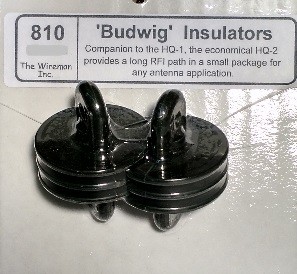 BUDWIG BRAND END INSULATORS (HQ-2) BOTH BUDWIG ITEMS MADE OF FIBERGLASS REINFORCED ABS PLASTIC, STRONG ENOUGH FOR ANY AMATEUR INSTALLATION. THE SHORT PROFILE OF HQ-2 IS VERY CONVENIENT AND THE RF PATH(FOLLOW THE ACTUAL SURFACE FROM HOLE TO HOLE)IS AS LONG AS THE DOG-BONE CERAMIC, OR PLASTIC TYPES ON THE MARKET. ALSO, THEY ARE THE BEST BUY!